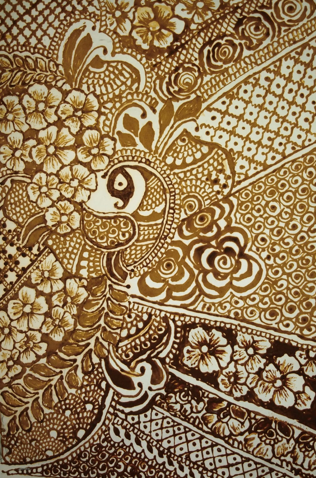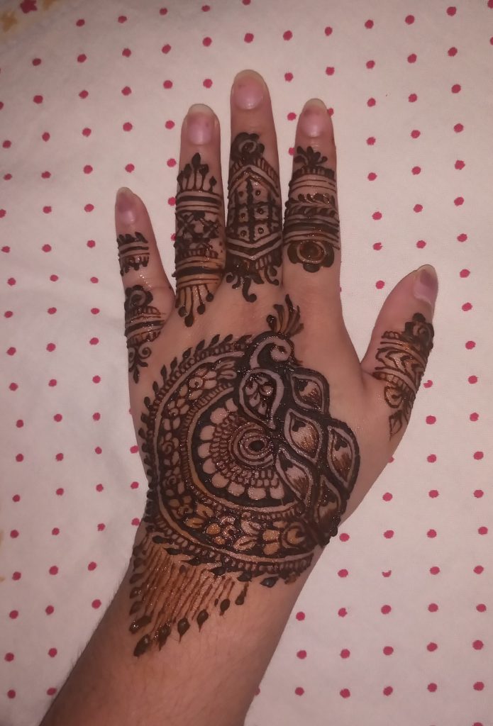 An enchanting Henna design that fuses the grace of a peacock with the delicacy of floral motifs.