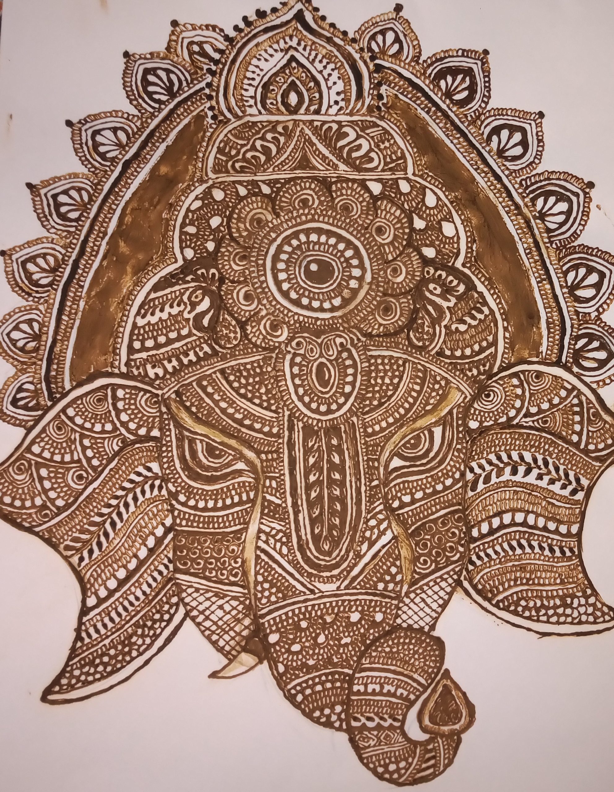 An artistic tribute in henna to Lord Ganesh, bringing elegance with spiritual significance